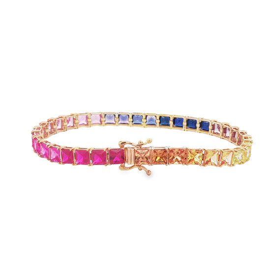 18Kイエローゴールド ラボグロウンカラーストーンブレスレット(スクエア型)